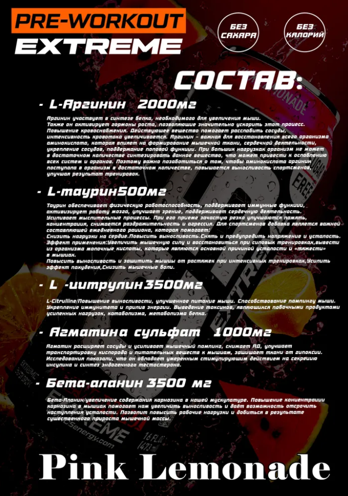Спортивный энергетический напиток C5 EXTREME рекомендуется для питания спортсменов в период интенсивных тренировок в дополнение к основному рациону как источник аминокислот (бета аланин, L-аргинин, таурин), креатина, цитруллина, витаминов В6, В12, никотинамида, кофеина, содержащий тирозин, в соответствии с программой, разработанной для данных видов спорта, под наблюдением спортивного врача или специалиста по спортивному питанию.