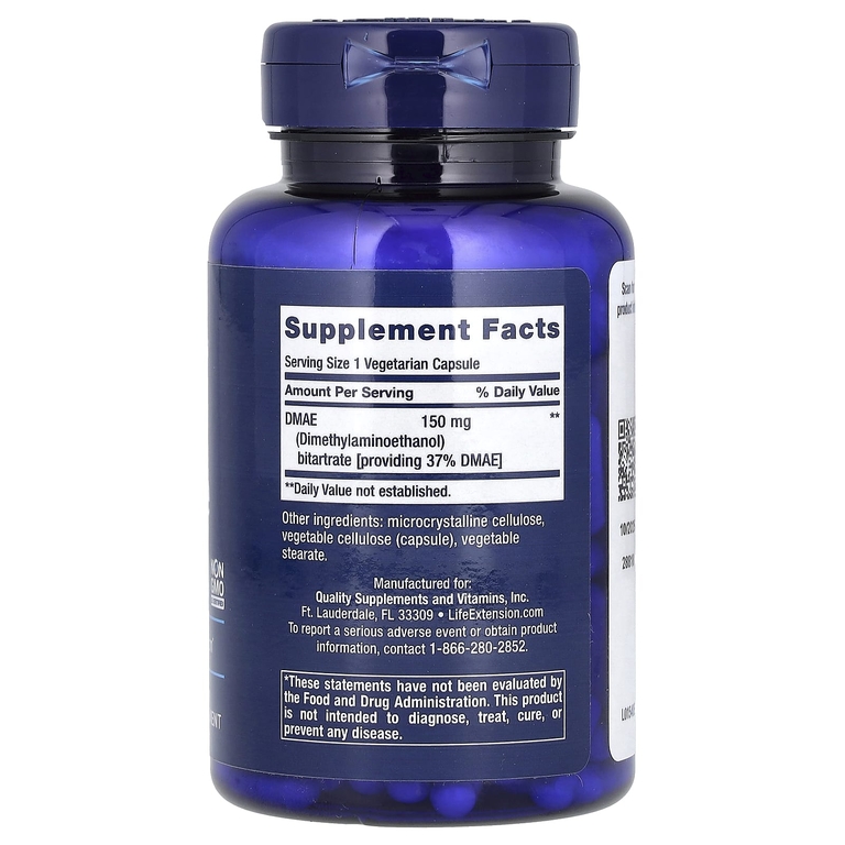 ДМАЭ (2-диметиламиноэтанол) — это соединение, используемое в организме для производства холина, который необходим для выработки оптимального количества ацетилхолина, основного нейромедиатора, задействованного в процессах запоминания и обучения. Холин также необходим для синтеза фосфатидилхолина — фосфолипида, используемого для образования и омоложения клеточных и митохондриальных мембран.