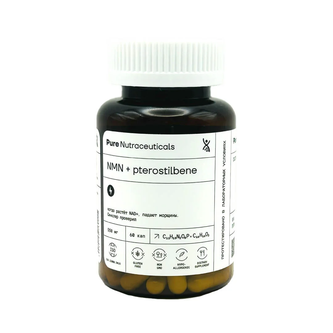 - NMN: Повышает уровни NAD+, что поддерживает клеточное здоровье и замедляет старение на молекулярном уровне.